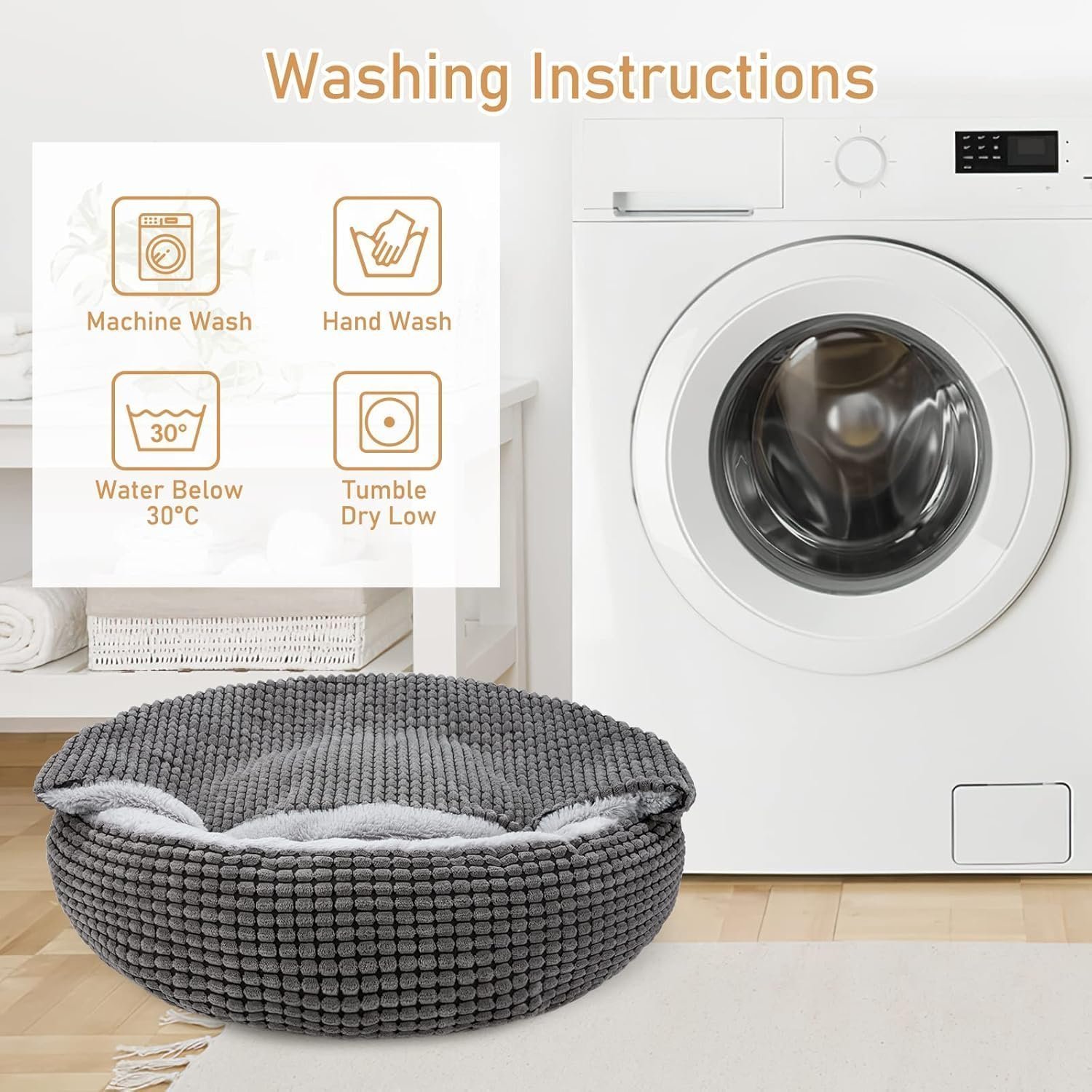 - Machine Washable Pet Bed: JOEJOY pet bed can be machine washed separately on a gentle cycle in cold water and tumble dry with low heat. Your loved pet will enjoy their clean bed. If you encounter any problem while using, please never hesitate to send email to us and we will make it all right for you.
