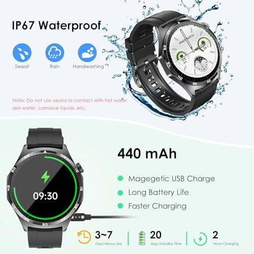 - 50+ Sports Fitness Tracker: Marsyu sports watch for men women support 50+ sports modes including walking, running, cycling, jump rope, yoga,badminton, and more. Sport smartwatch will record the datas when you do exercise.Our smart watch also meets IP67 waterproof standards, which means you can wear it for daily waterproofing. Please note that it is not resistant to hot water or sea water. Do not use while swimming or showering!