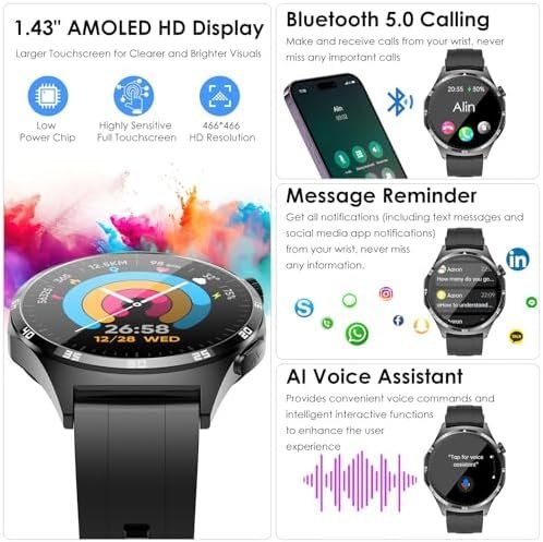 Marsyu Smartwatch with ECG,1.43″ AMOLED Screen Smart Watch for Men Answer/Make Calls,Sport Fitness Smartwatchs with Blood ρressure,Heart Rate,SPO2,Body Temperature,Sleep Monitor Watch,Black Amazon.co.uk: Electronics & Photo