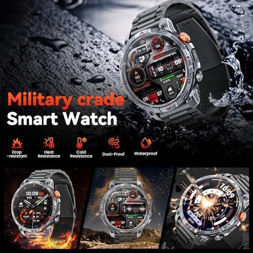 Military Smart Watches for Men,1.75″ Smartwatch with 100-Day Ultra-Long Battery/Flashlight,Fitness Watch for Heart Rate/Sleep/SpO2 /Calling/110+ Sports Mode Smart Watch for Android IOS 1000 mAh Amazon.co.uk: Electronics & Photo