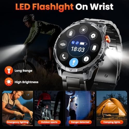 - 【1000mAh Large Battery, Extra-Long Battery Life】This smartwatches was equipped with a battery capacity of up to 1000mAh, which is four times that of traditional smartwatch.Lasting 30 days in normal mode or providing over 100 days of ultra-long standby time. It is ideal for those who love outdoor adventures and frequent travel, as its powerful performance you don’t need to worry about frequent charging. It can be fully charged in just 3 hours.At the same time he can provide more than two hours of emergency lighting for the flashlight.keeping you no worries and ready for any adventure.