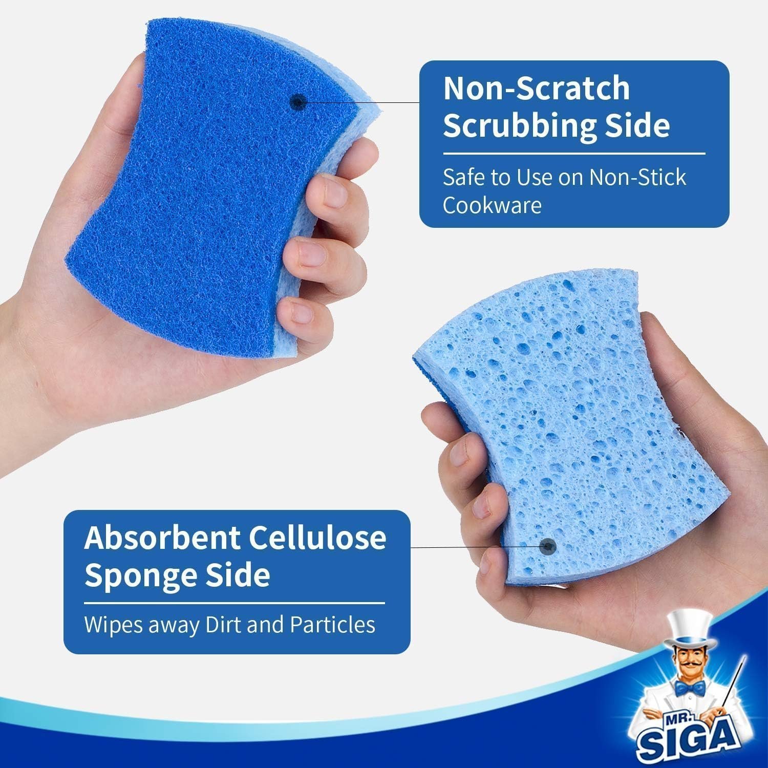 - DURABLE & LONG LASTING. MR.SIGA scrub sponge are made to last, they maintain the shape well and do not fall apart or crack easily like regular sponges, and last a long time even when scrubbing tough burned food. So scrub, wipe and clean with MR.SIGA cleaning sponges confidently.