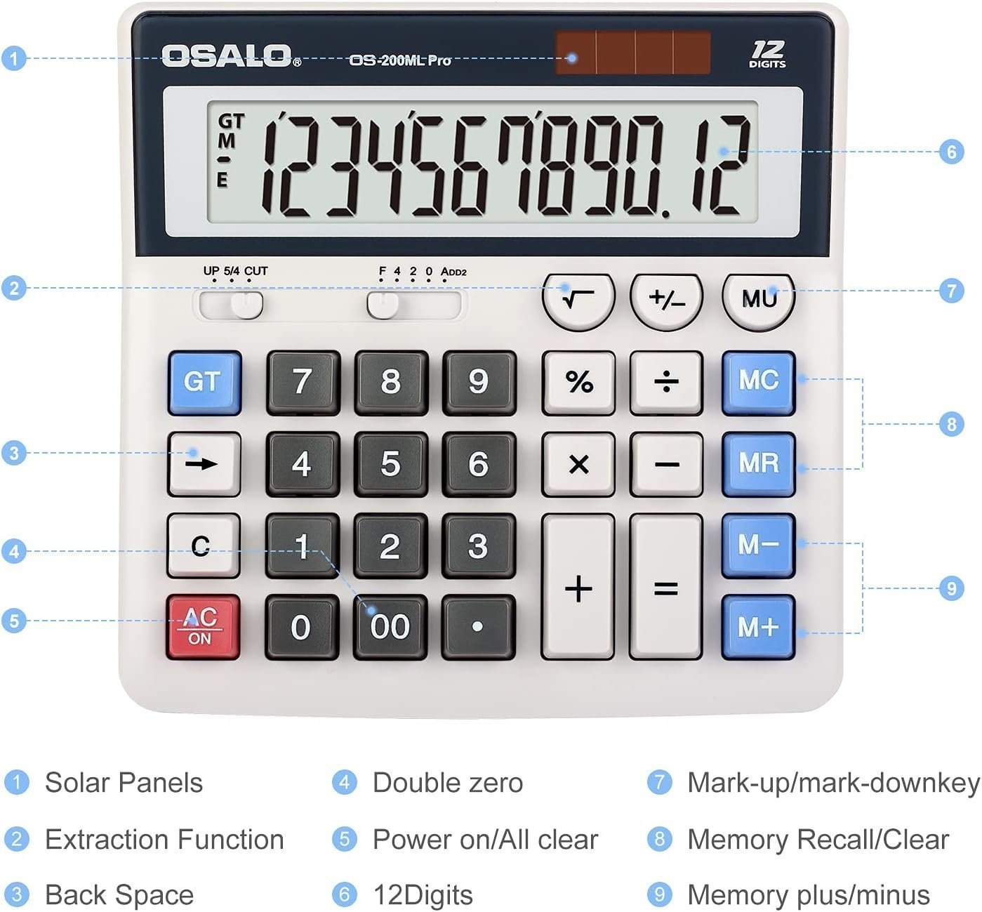 OSALO Desktop Calculator Extra Large LCD Display 12-Digit Big Number Accounting Calculator (OS-200ML)
