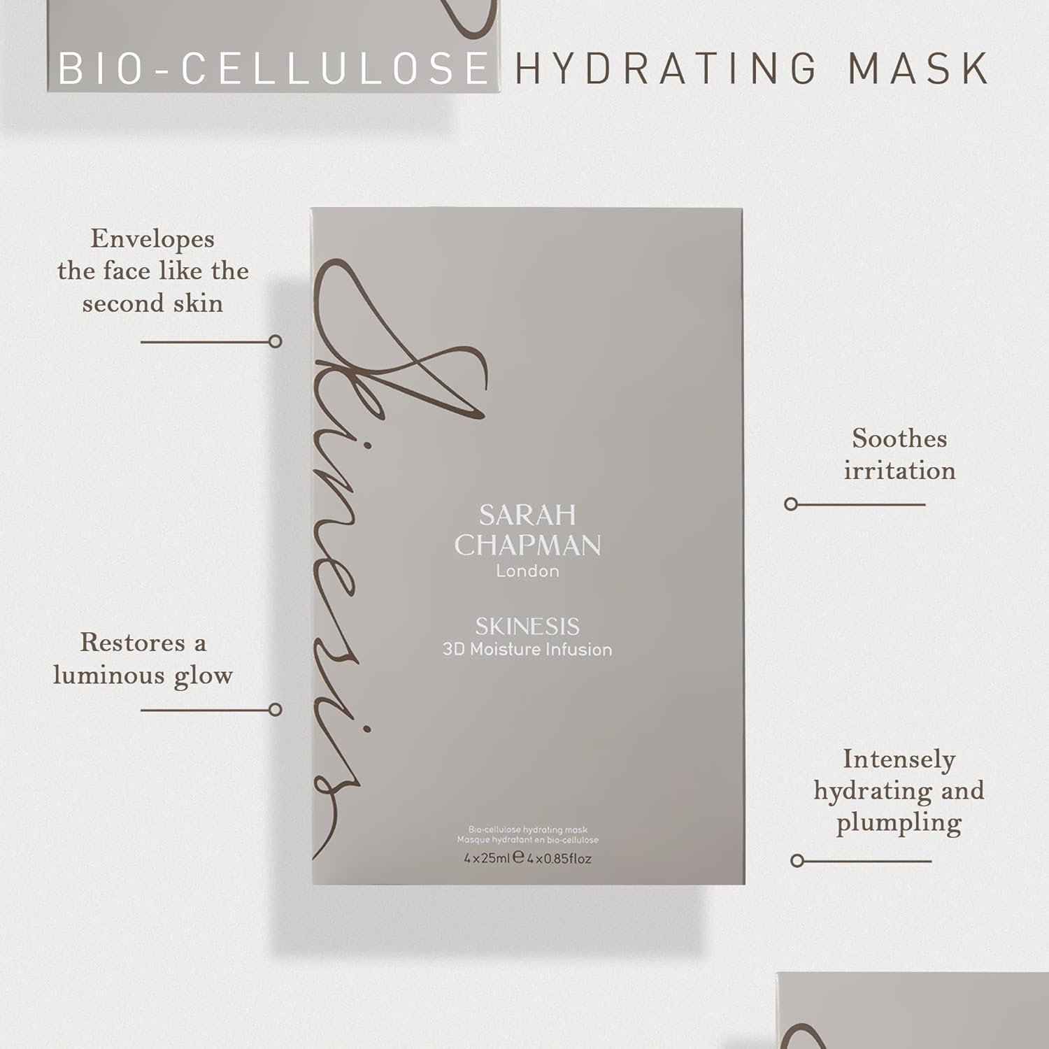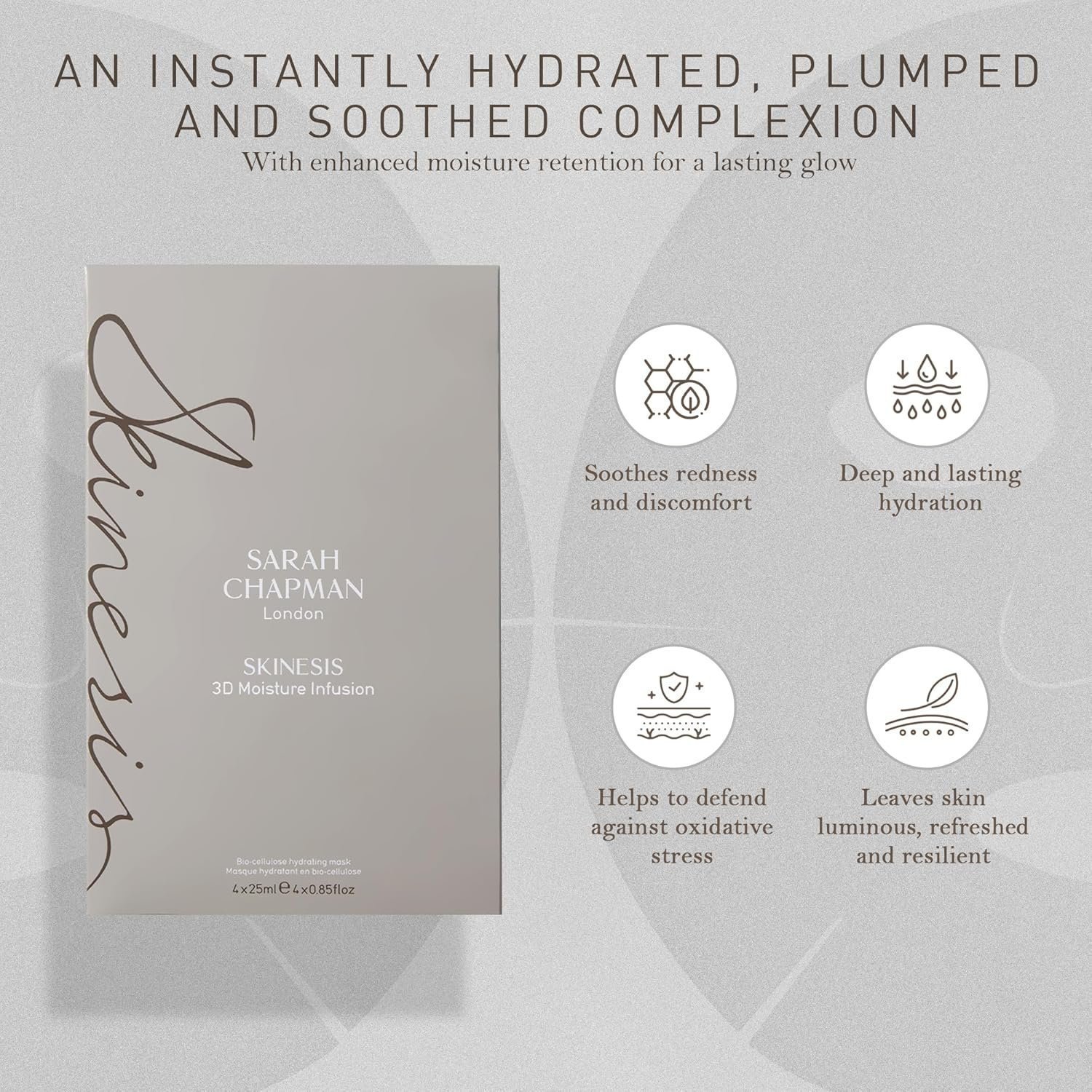 Experience ultimate hydration with the Sarah Chapman Skinesis 3D Moisture Infusion Mask Kit, a pack of 4 luxurious sheet masks designed to restore a natural, luminous glow. Infused with hyaluronic acid and zinc, these masks deliver intense moisture to dry, dehydrated skin while soothing redness and inflammation. The formula strengthens the skin’s natural barrier, relieving compromised skin conditions and enhancing resilience.