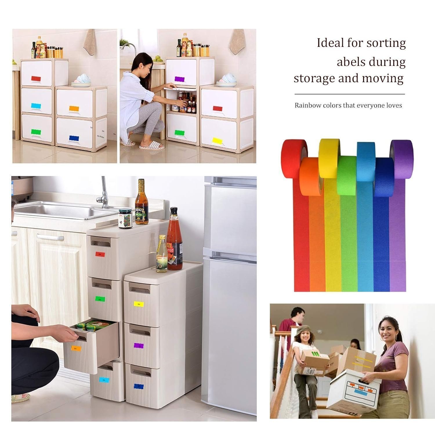 - Rainbow 7 colors :Each package included 7 rolls rainbow colorful masking tape(Included:Red,orange,yellow,green,cyan,blue,purple.14.2yd×0.98in×0.006in Thickness). It’s perfect for color-coded boxes and packages when stored, packed or moved around.