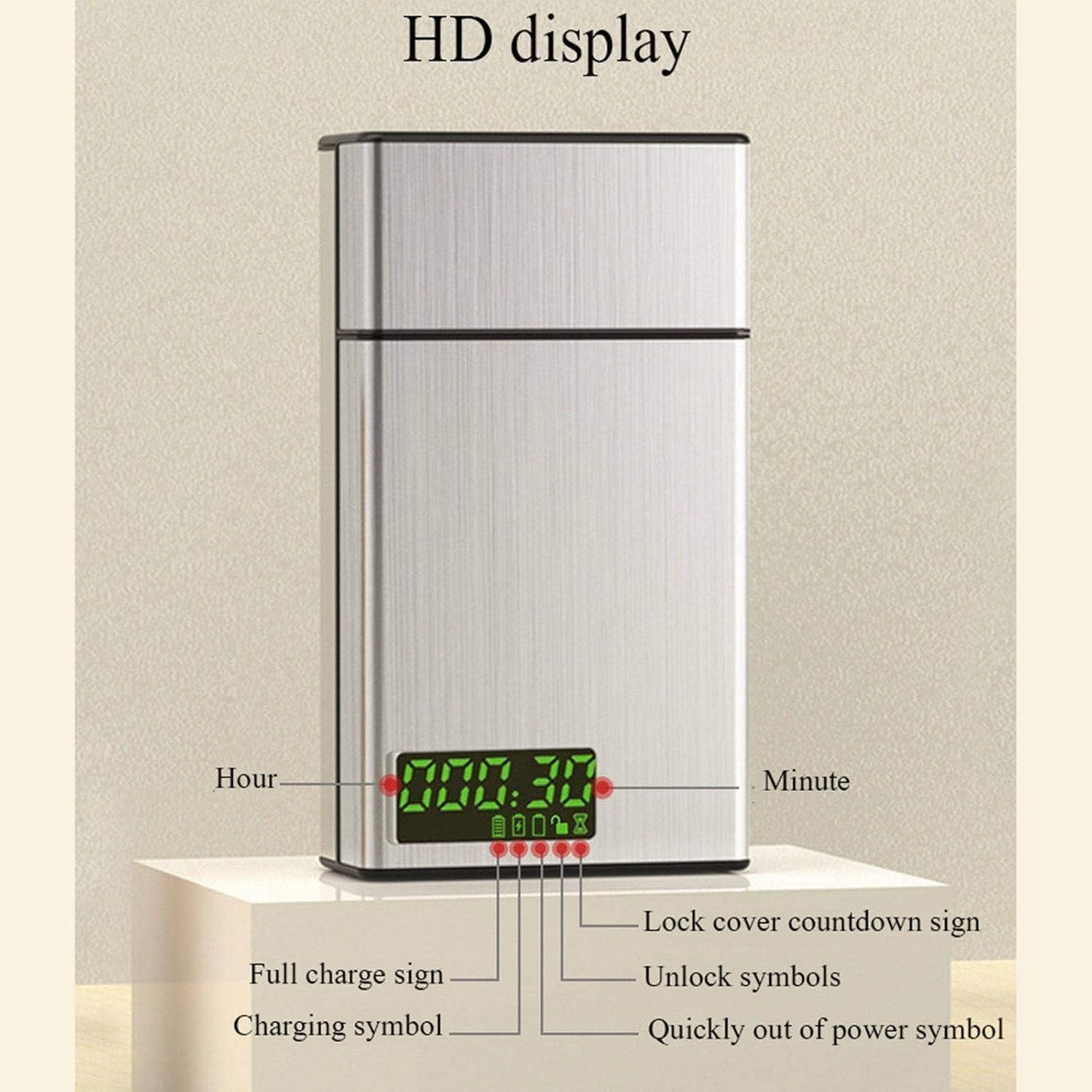 Smart Cigarette Case, Smoking Cessation Aid, Aluminum Alloy Timer and Lock Case, 20 Slim Cigarettes,Silver
