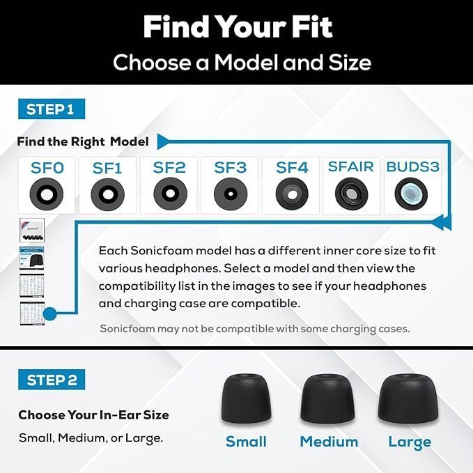 SONICFOAM (SF2 Medium Black) Replacement Memory Foam Earbud Tips for Earbuds with Speaker Diameter 4.4-5.7mm – 20 Pack / 10 Pairs