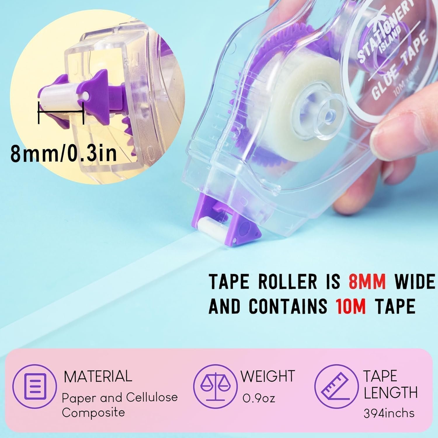 STATIONERY ISLAND Glue Tape Roller 8Pcs, 10mx8mm Double Side Tape Dispenser Roller