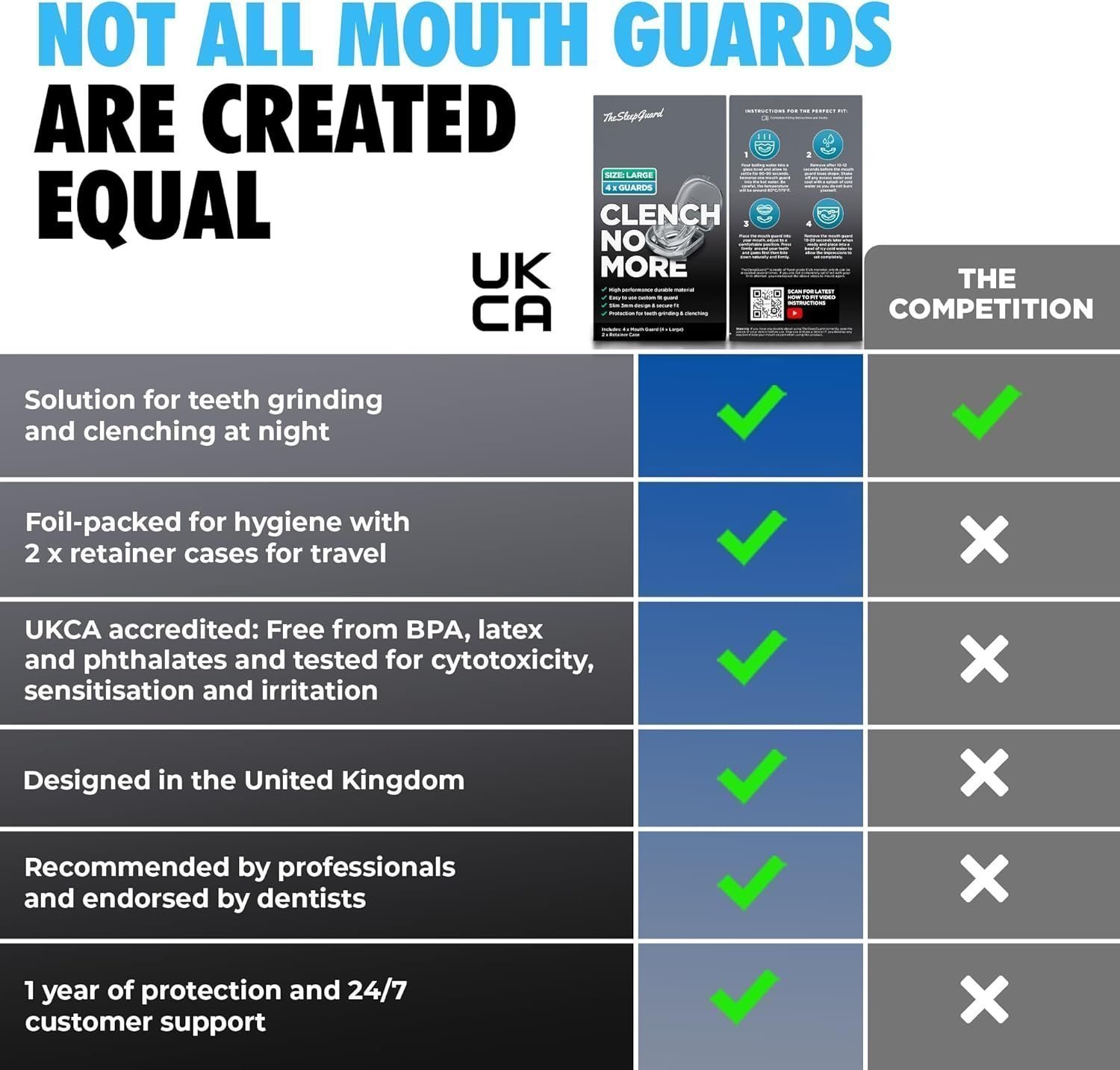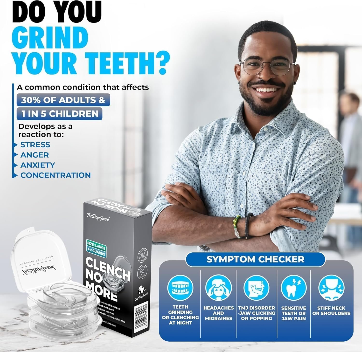 - UNBEATABLE NIGHTTIME PROTECTION – Our Clench No More mouth guard for grinding teeth at night provides a physical barrier that shields your teeth from the irreversible damage of grinding or clenching. Yes, bruxism can cause tooth fractures, enamel wear and gum recession whilst you sleep!