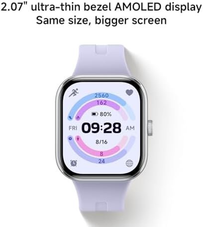 • [Ultra-thin bezel] Same size, bigger screen. 2.07″ AMOLED display, 60Hz high refresh rate, and Stainless-steel rotating crown.